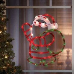 IG Design Multicolored Lit Santa Silhouette Window Decoration 23 In.