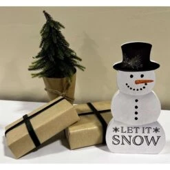 P Graham Dunn Black/White Snowman Let It Snow Table Decor 7 In.