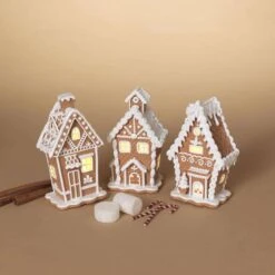 Gerson LED Brown/White Lighted Gingerbread Table Decor 7 In.