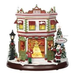 Roman Confetti Lite LED Multicolored Musical Sweet Shop 2 Story Christmas Village 10.25 In.