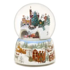 Roman Glitter Dome LED Multicolored Musical Christmas Train In Village Indoor Christmas Decor 6.75 I