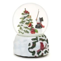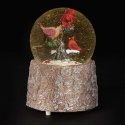 Roman Glitter Dome LED Multicolored Musical Swirl Dome With 3 Cardinals And Holly Indoor Christmas D
