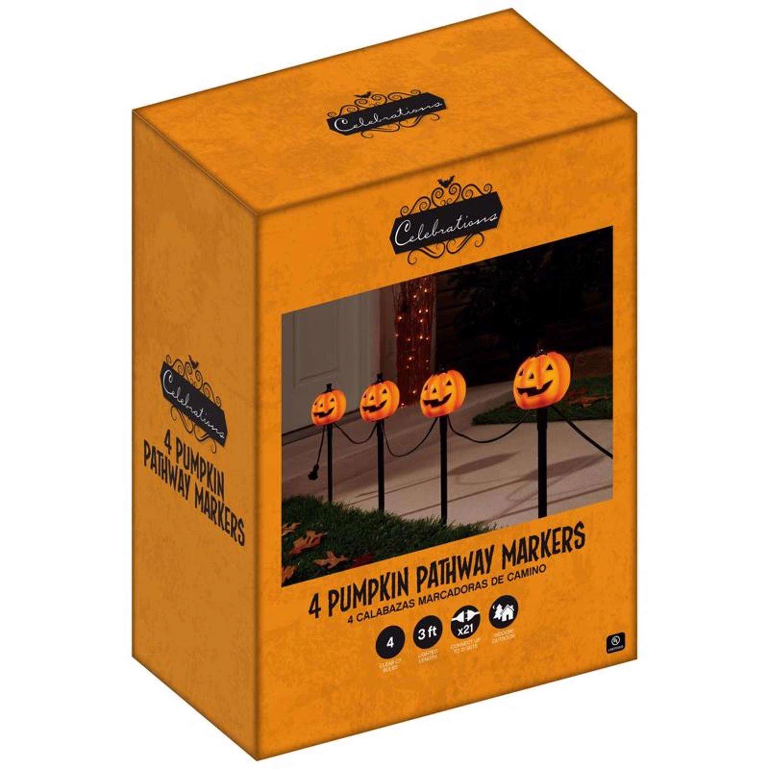 Celebrations Halloween Clear 4 In. Incandescent Pumpkin Pathway Decor