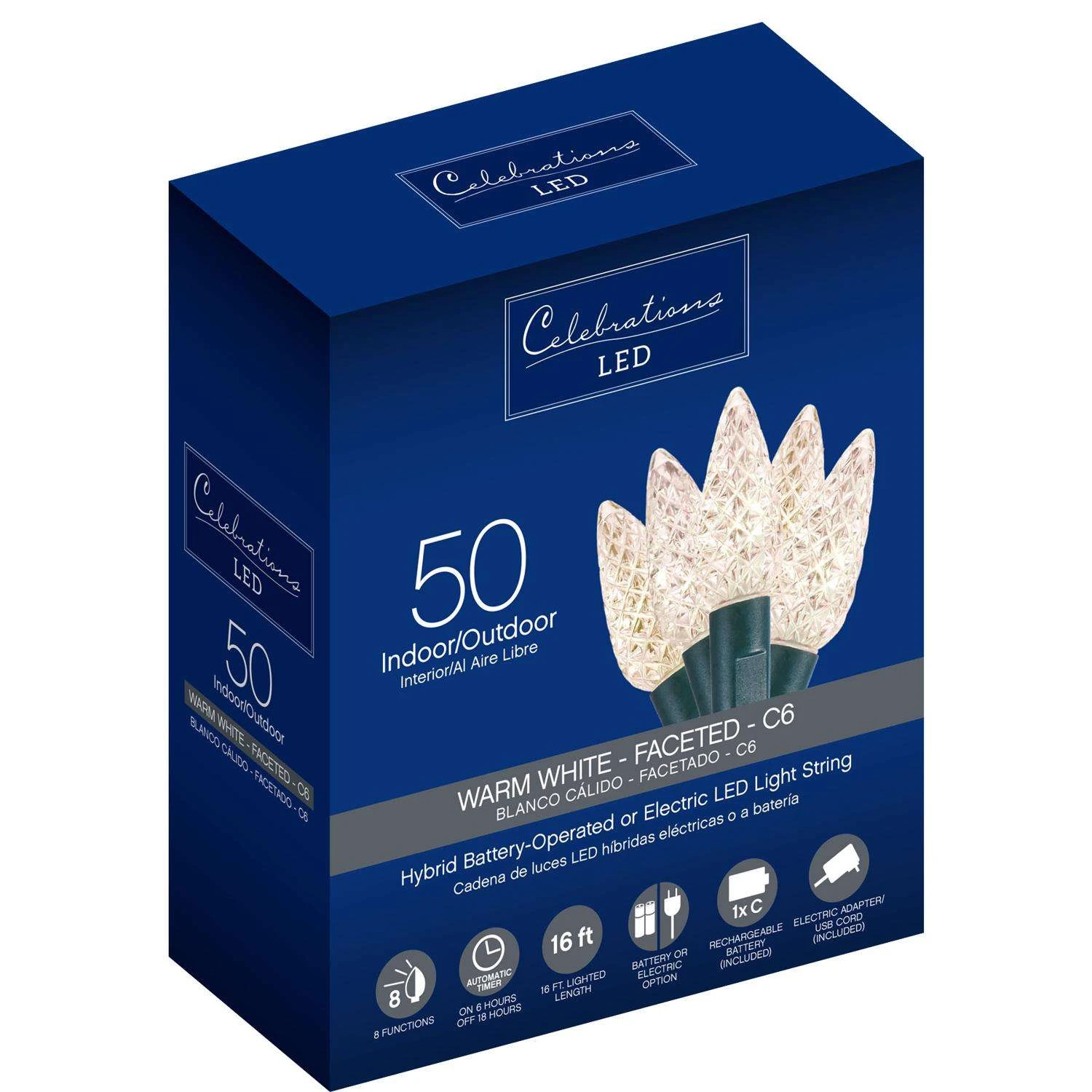 Celebrations LED C6 Warm White 50 Ct String Christmas Lights 16 Ft.