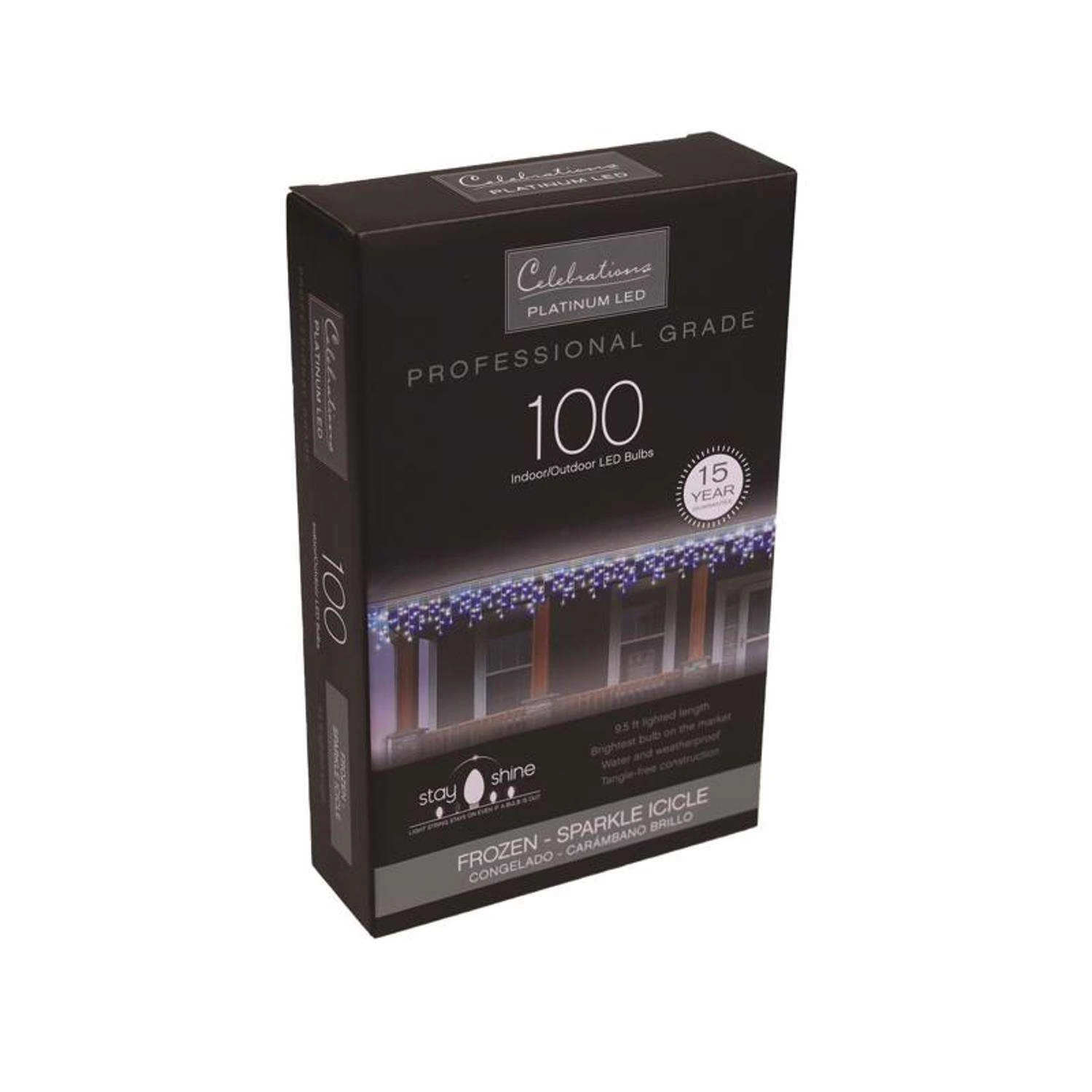 Celebrations Platinum LED T5 Blue/Pure White 100 Ct Icicle Christmas Lights 9.5 Ft.