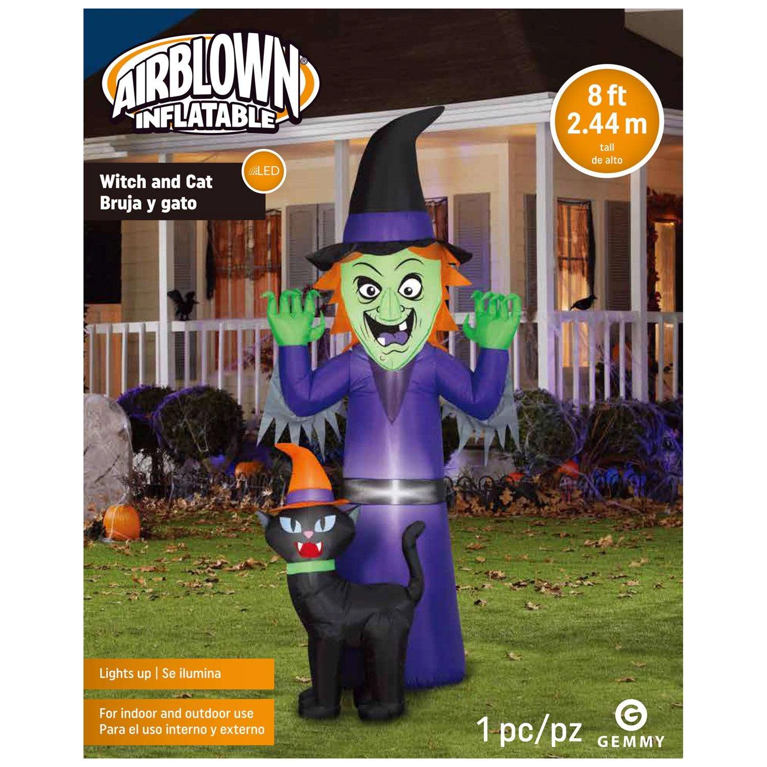 Gemmy Airblown 9 Ft. LED Prelit Witch And Cat Inflatable