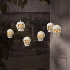 Gerson 5 In. Lighted Hanging Skulls Halloween Decor