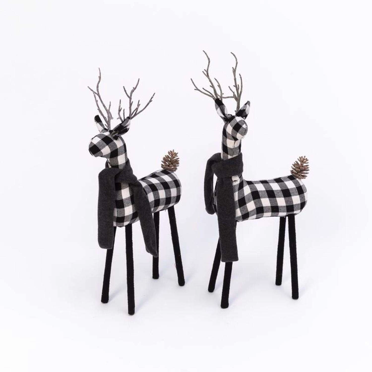 Gerson Black And White Plaid Reindeer Figurine 20 In.