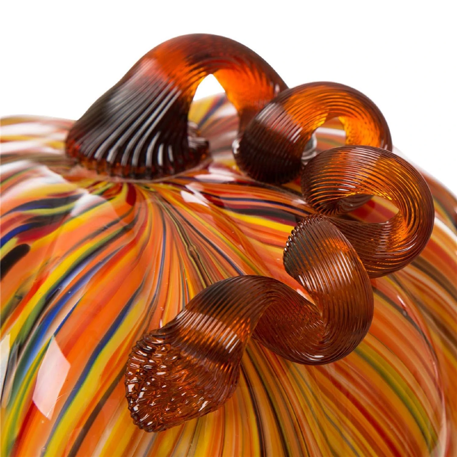 Glitzhome 6.50 In. Multi Striped Glass Large Pumpkin Tabletop Decor