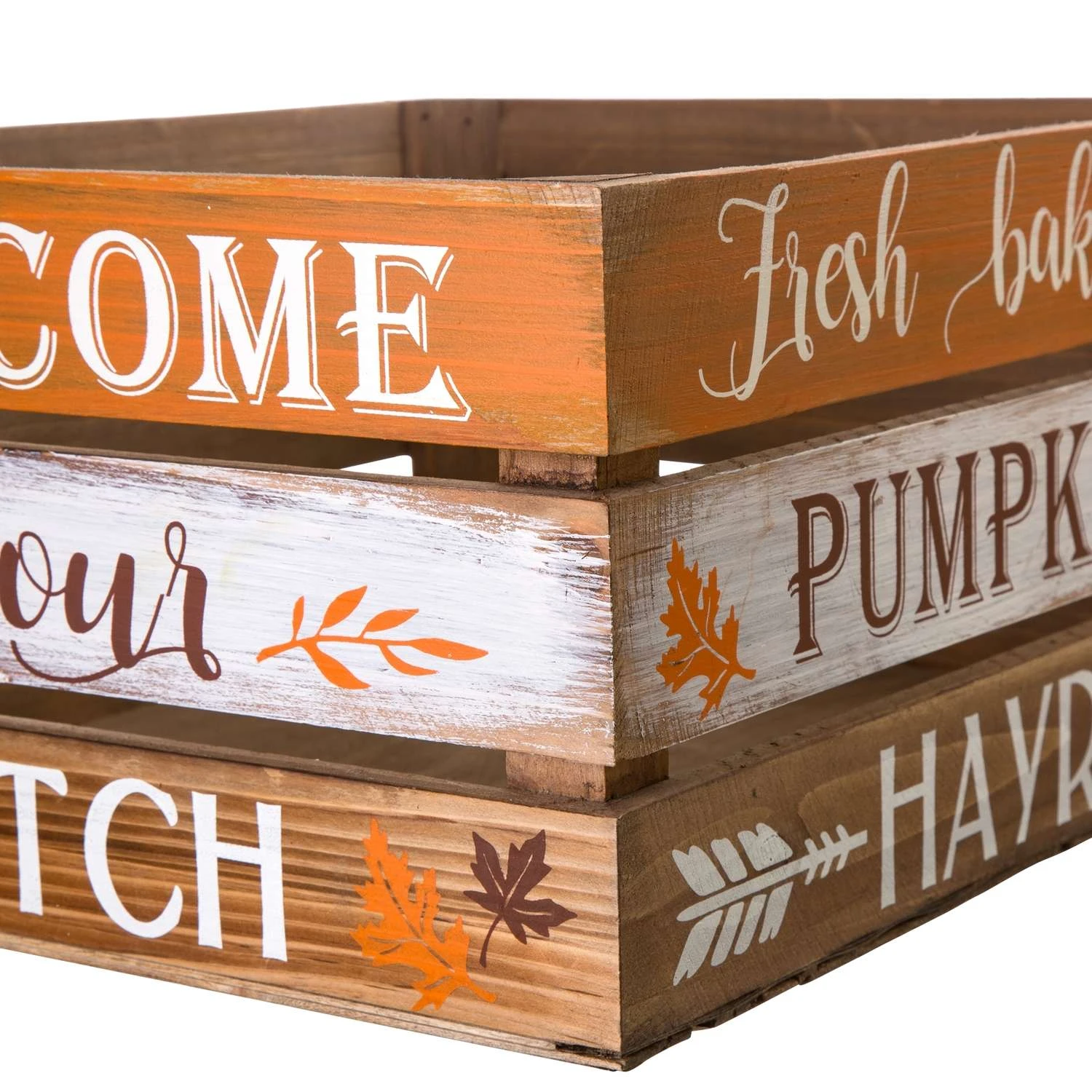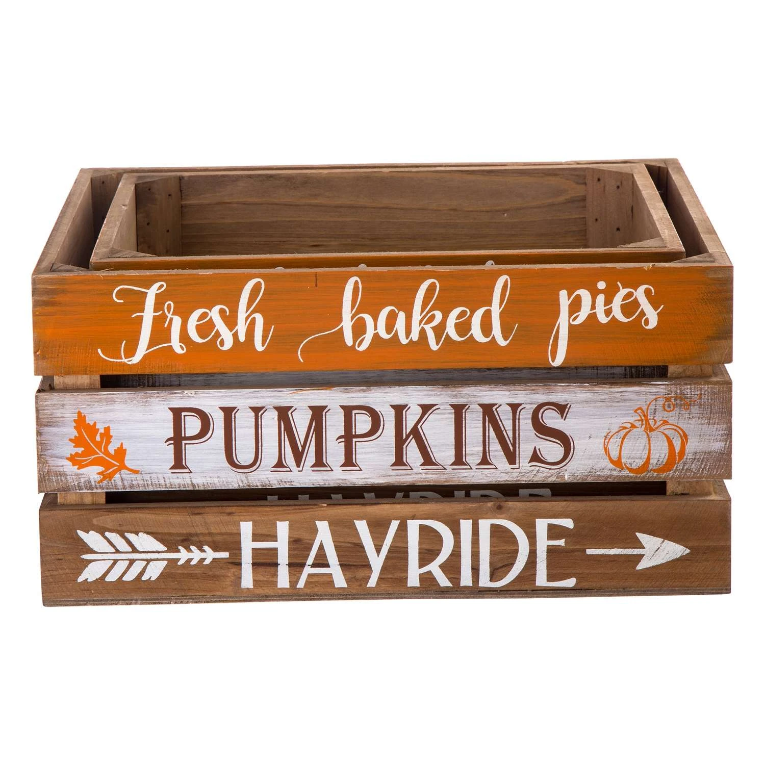 Glitzhome 6.89 In. Pumpkin Crate Tabletop Decor