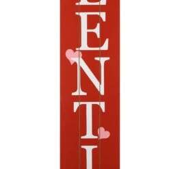 Bring a merry touch to your holiday decor using this vertical porch leaner. It features printed Happy Valentine’s Day in white on a red background and slatted design. The words is also accepted with pink hearts which gives the sign a lot more of romantic feel.Lean against wall or hang it on the wall with jute rope on the backClassic red color way and romantic heart designHandcrafted with elegant slot linesSimply assemble, easy to move and storage for reuseMade of 100% high quality MDF