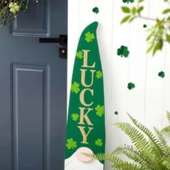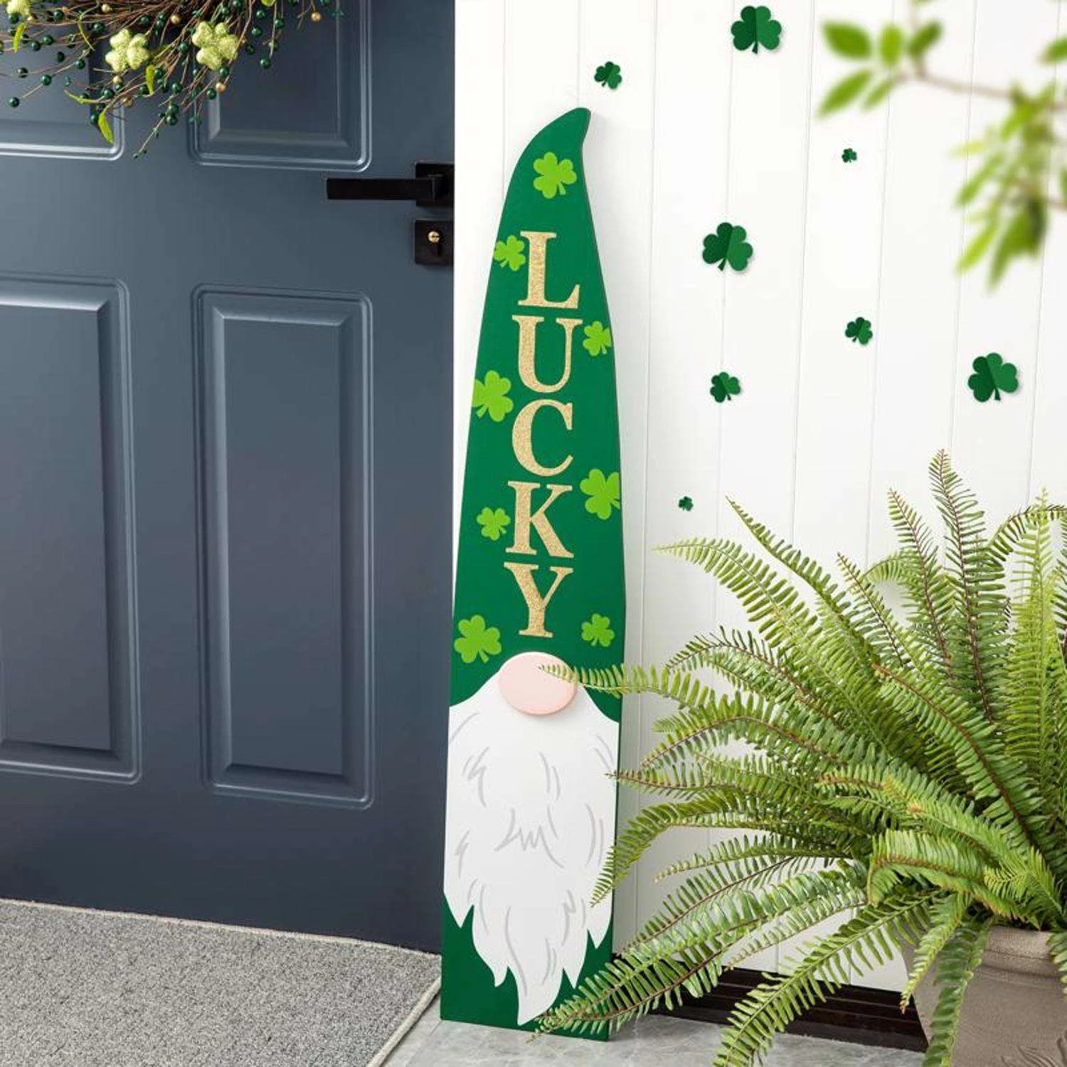 Glitzhome St Patrick’s Lucky Gnome Porch Sign Decor MDF 1 Pc