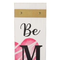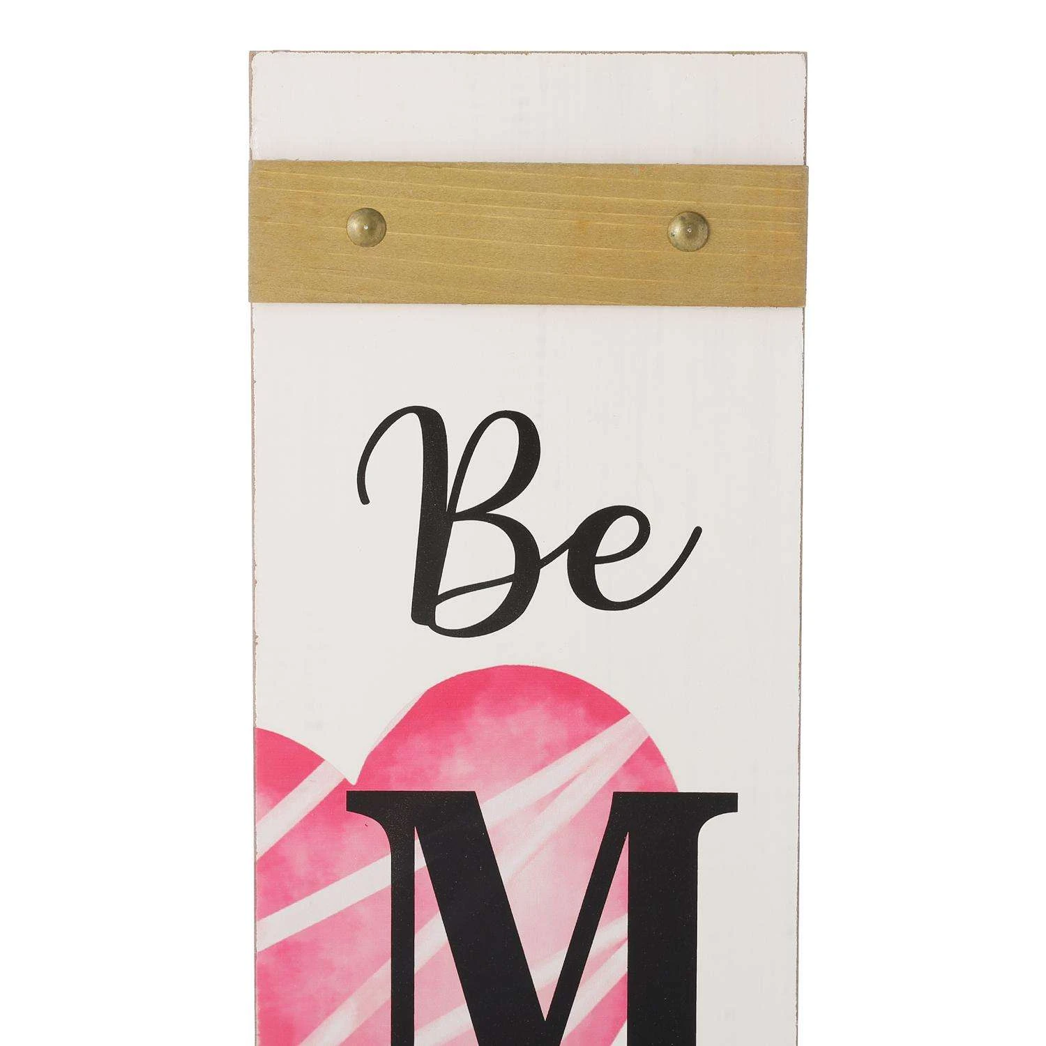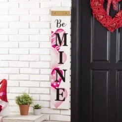 Gorgeous “Be Mine” porch sign, 42 inch H, the words are written down the white panel, front that is accented with hearts which stained in different pinks. Able to display upright by an easel stand or from a wall, it’s a charming addition to your Valentine’s decorations.Easy to useFeatured with watercolor heart under printed word and handcraftedHanging hooks and jute rope on back top