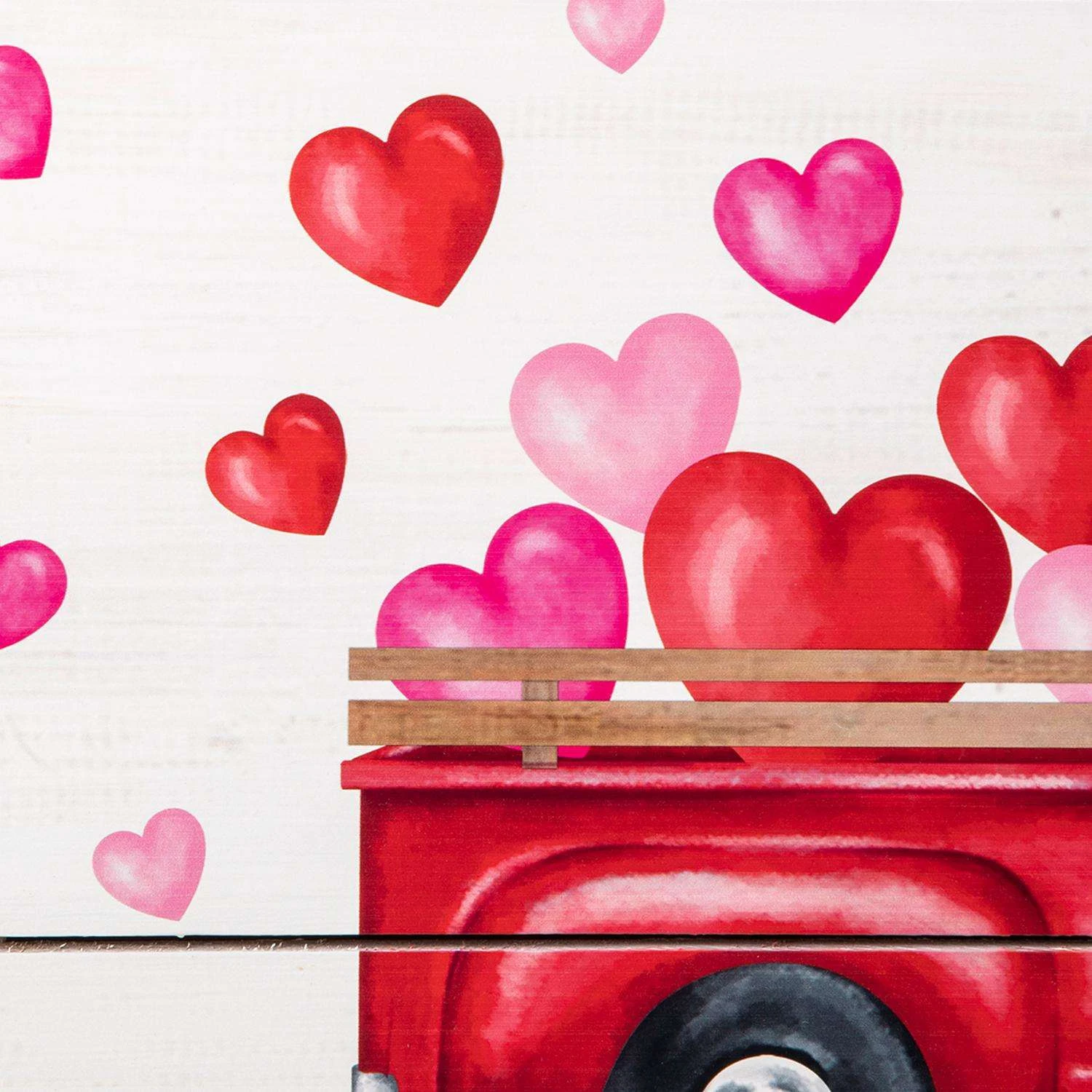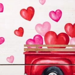 Decorate your Valentine’s day with this art wall deco which features a red vintage truck with full of heart-shaped balloons painted on white wood panels. It reads, A TRUCKLOAD OF LOVE on valentine’s day, brings you with special festival atmosphere. Perfect for your door or your wall.Easy to hang with hook at the topCrafted of solid wood for durabilityHigh-quality prints