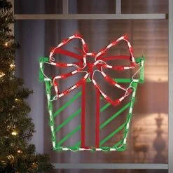 IG Design Green/Red Lit Present Silhouette Window Decoration 23 In.