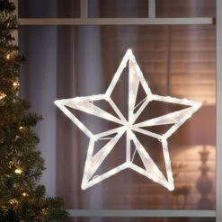 IG Design Green/Red Lit Stocking Silhouette Window Decoration 16 In.