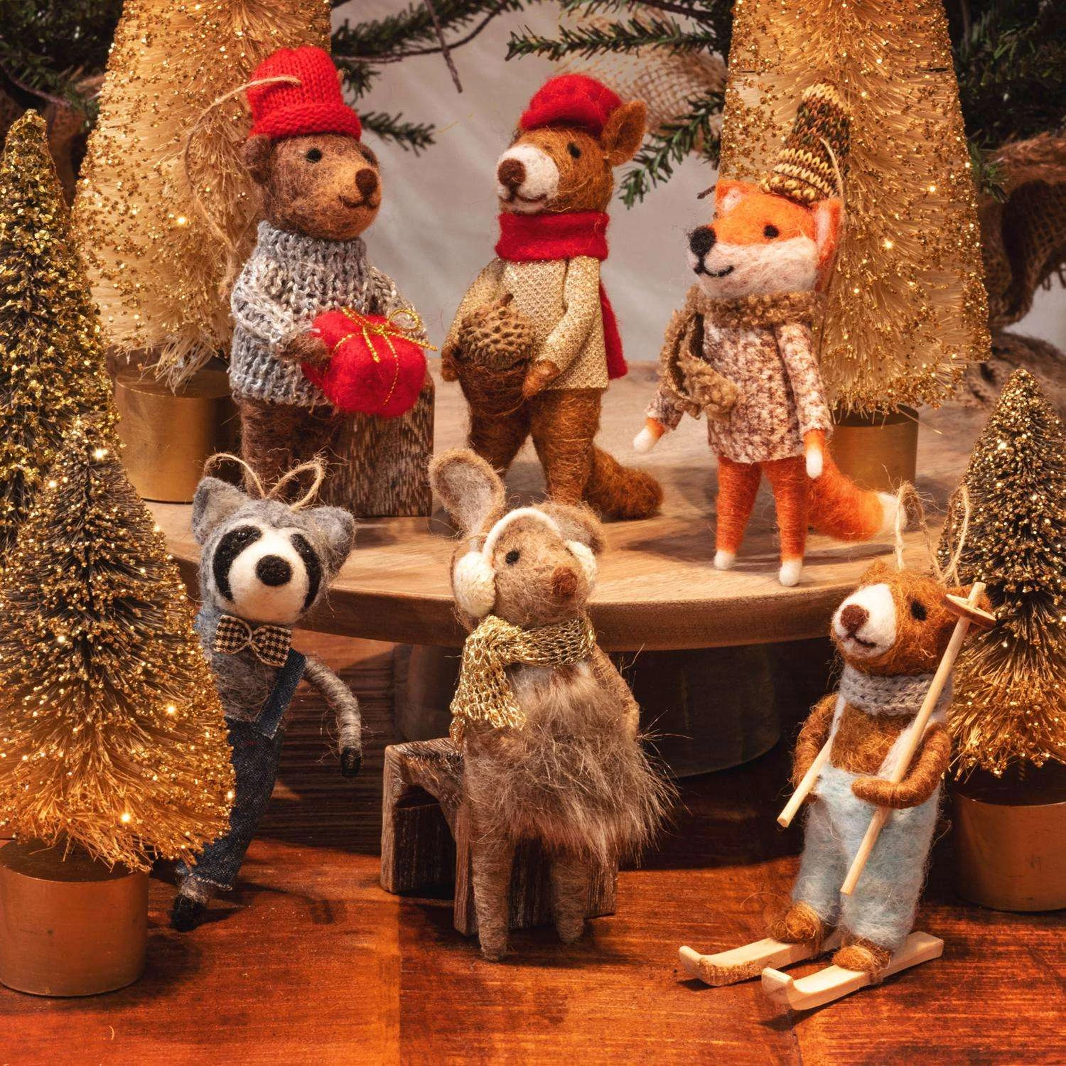 Felted ornaments of woodland, domestic and sea animals create the perfect element of charm in your holiday decorating. Each sweet character has a unique detail to add personality and a holiday touch. Mice adorned with wreaths, dogs wearing scarves and birdies with santa hats are all longing to be hung around your home’s tree, wreath or garland. Get whimsical this holiday season with soft to touch, non-breakable and full of character felt ornaments.Create a soft and whimsical holiday displayEach ornament has a unique accessorySpot clean