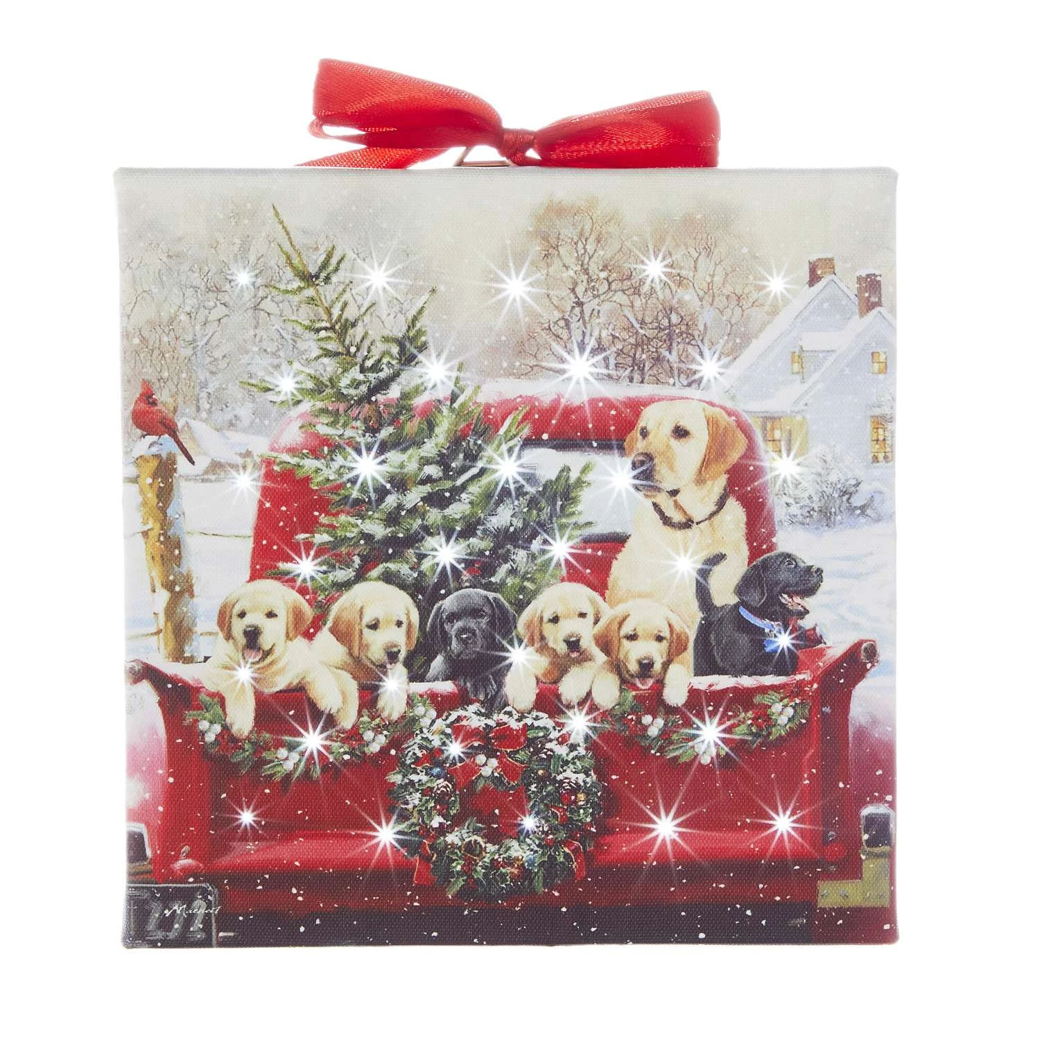 Raz Incandescent Multicolored Lab Dogs In Pickup Truck Ornament 6 In.