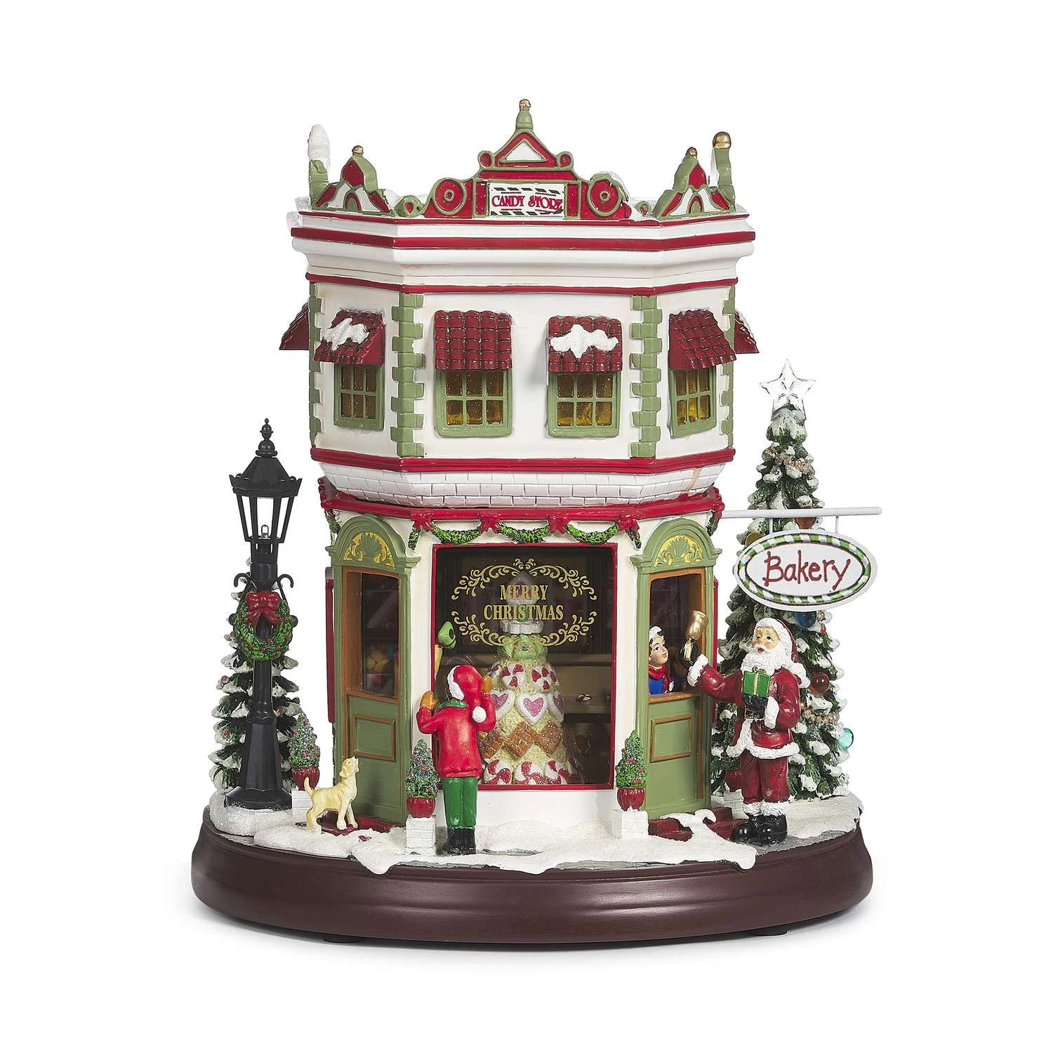 Roman Confetti Lite LED Multicolored Musical Sweet Shop 2 Story Christmas Village 10.25 In.