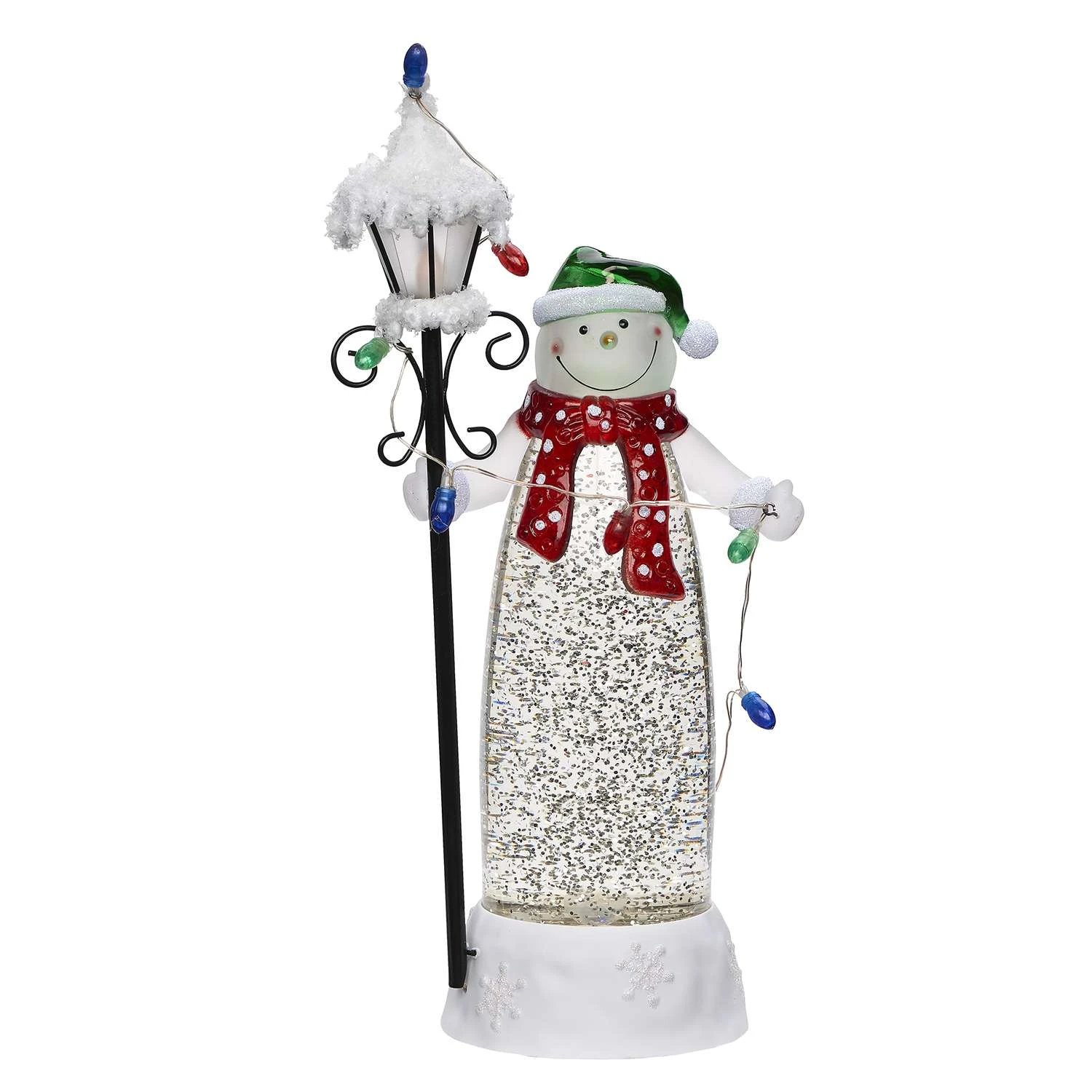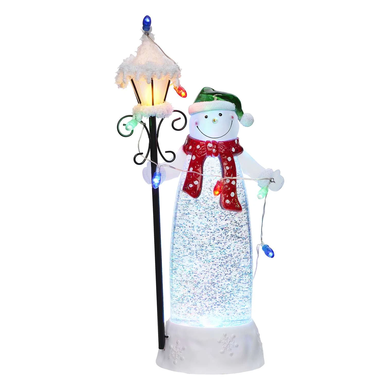 Roman Holiday LED Multicolored Standing Snowman With Lamp And String Of Ornaments Figurine 11.5 In.